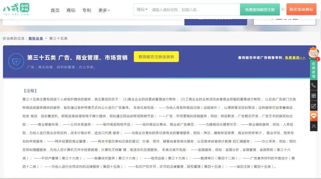 除了以上给老板们介绍的三种类别外,还有更多细分的商标类别,老板们可以登录八戒知识产权网查询商标分类表。