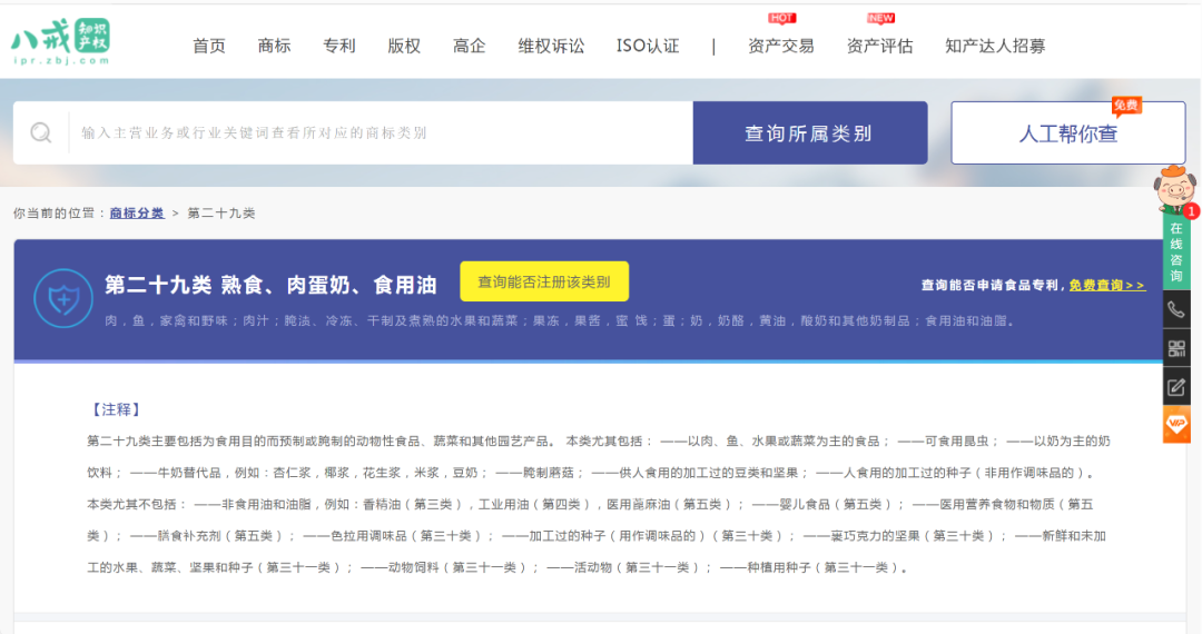 第29类:主要是关于熟食、肉蛋奶、食用油,29类是重要类别。